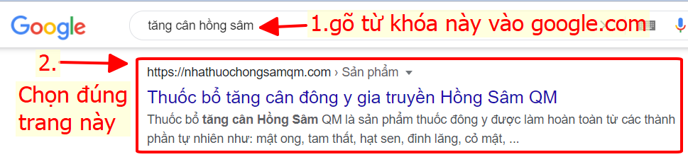 - Bước 2: Tìm từ trên xuống dưới sẽ thấy trang https://nhathuochongsamqm.com/****/ thì bấm vào đó
